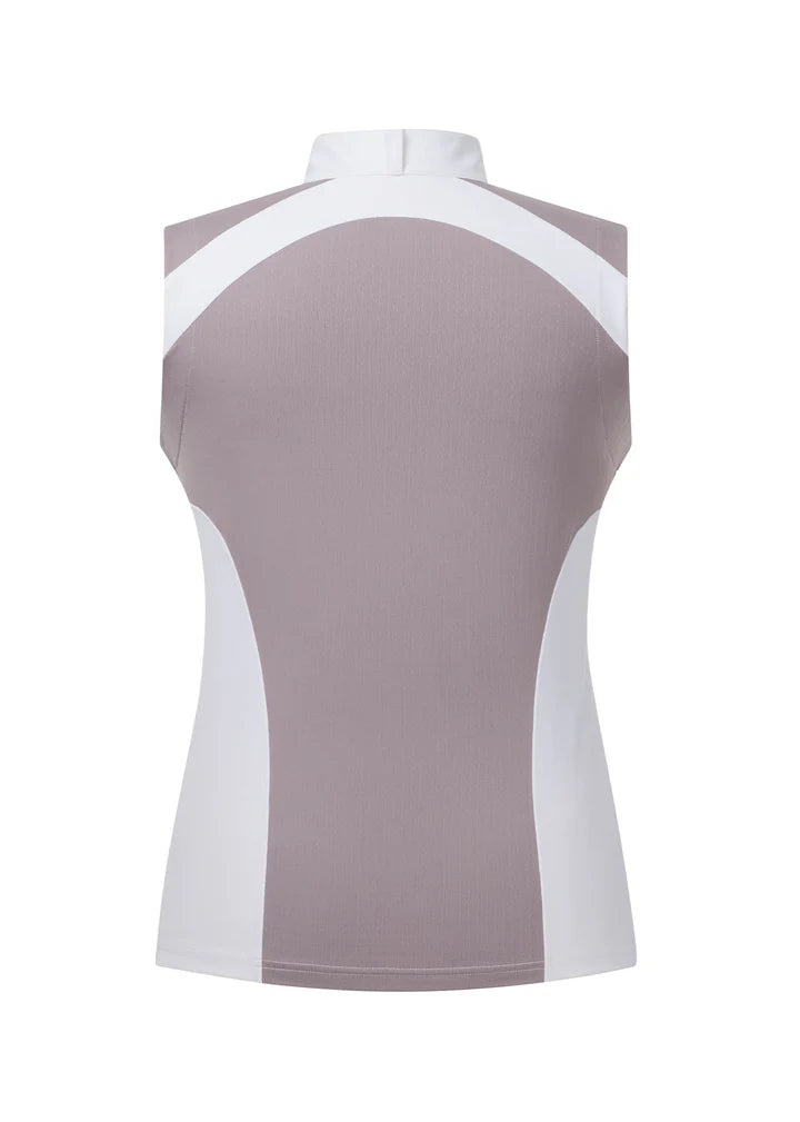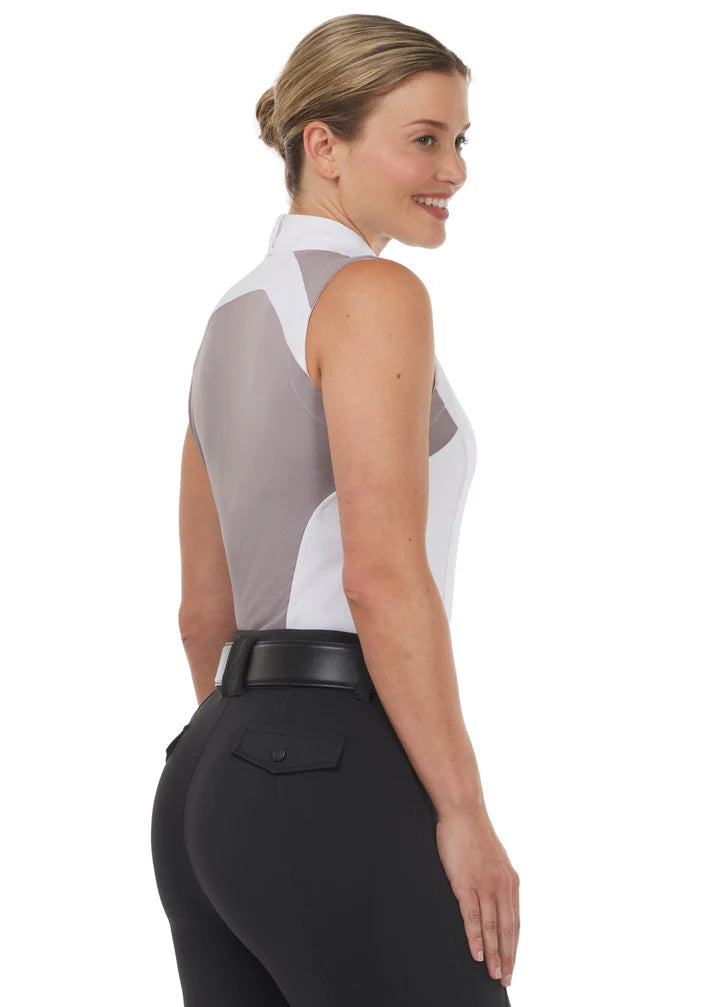 A cooling sleeveless show shirt engineered with a mesh back panel for extra breathability and winning performance when it matters. Shaped seaming and a feminine fit, designed for smooth layering under your show coat.