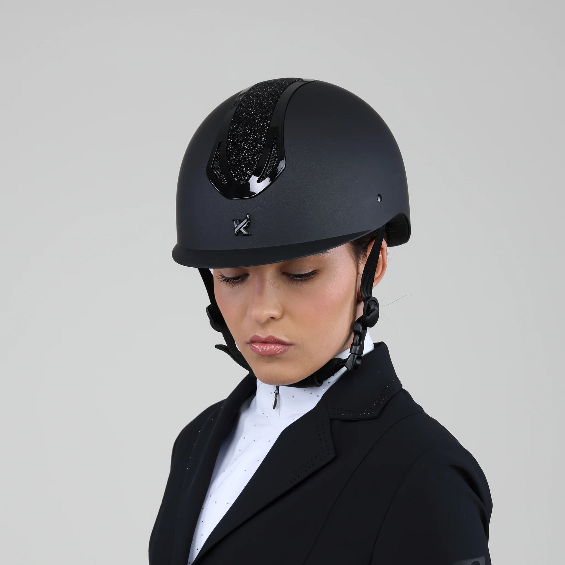 The Alessa helmet features key Karben safety and comfort measures for reassurance during horse riding activities. Reach for the sky in the Karben Sonic Alessa Riding Helmet. Packed with Karben safety and comfort features, and high on attention grabbing style with plenty of sparkle at the crown of the helmet. The smooth outer shell provides the foundation to thoughtful style features, giving the Sonic riding hat range distinction and universal appeal. Elegantly shaped, the frame draws attention to a decorative feature crown for style elevation. Aimed at enhanced comfort, the TriVent Sonic Air system draws air deep within the hat, helping to keep moisture levels low. The Karben bespoke fit dial allows fine adjustment to the fit of this hat to accommodate a high level of safety. Within the hat are many more Karben safety and comfort measures for reassurance during riding activities.