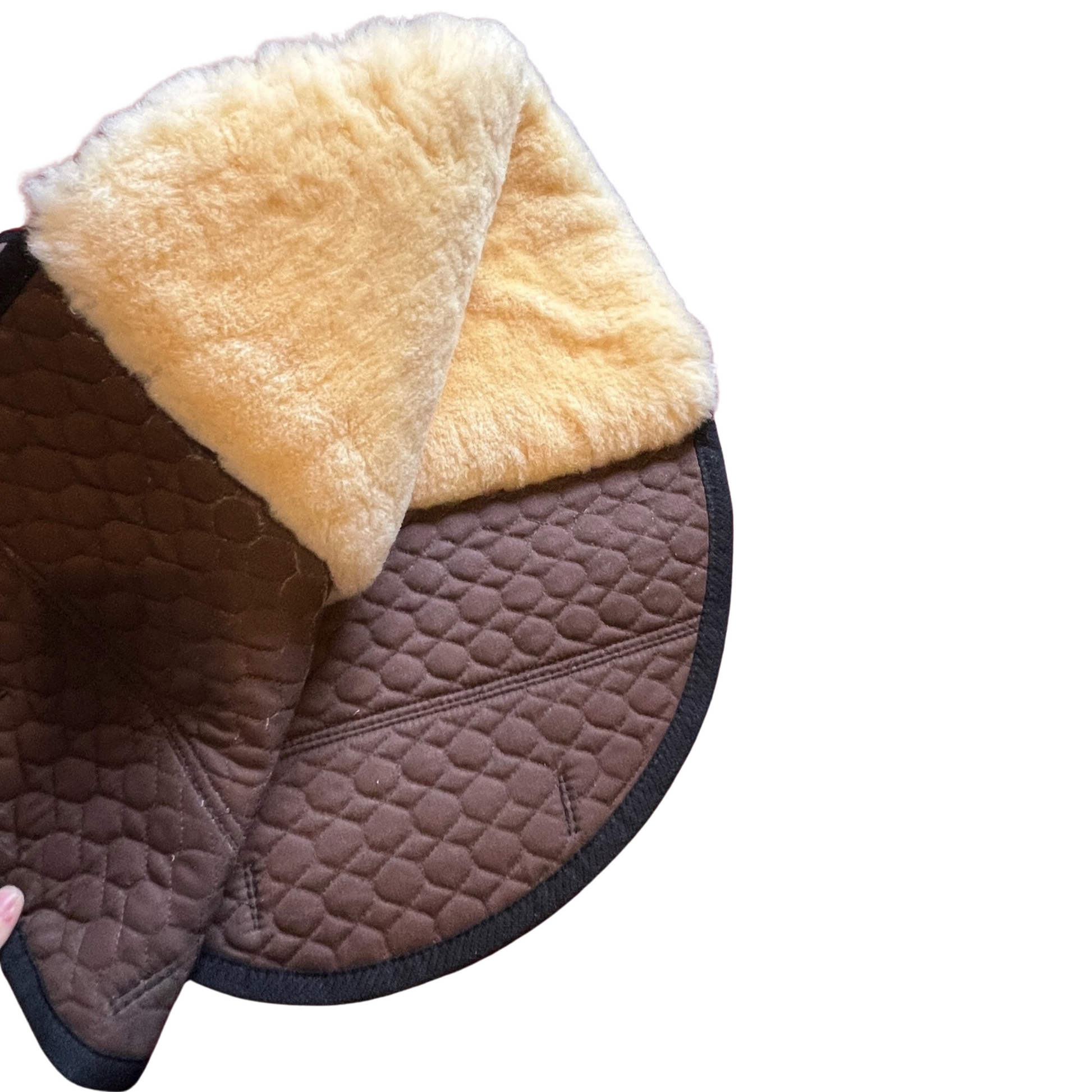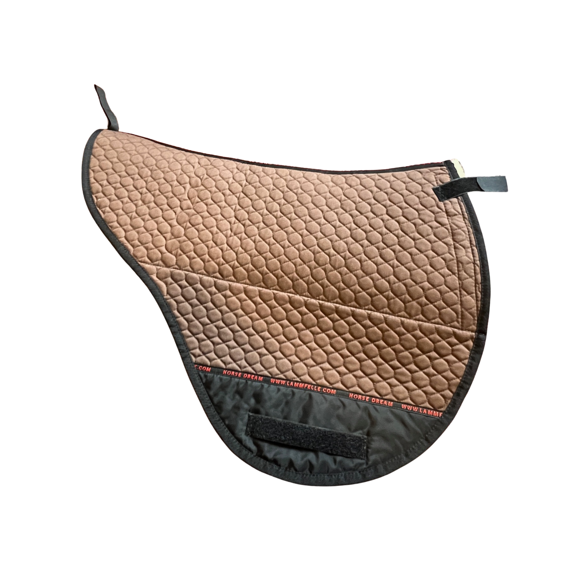 The saddle pad was designed for treeless saddles but can work with any English or endurance style saddle. The ultra plush lambskin covers the seat for extra comfort for your horse's back. The poly cotton quilted upper is durable and the lambskin lining opens up at the front so you can add shims or extra padding for custom fit. Velcro d-ring and girth straps keep your pad in place.