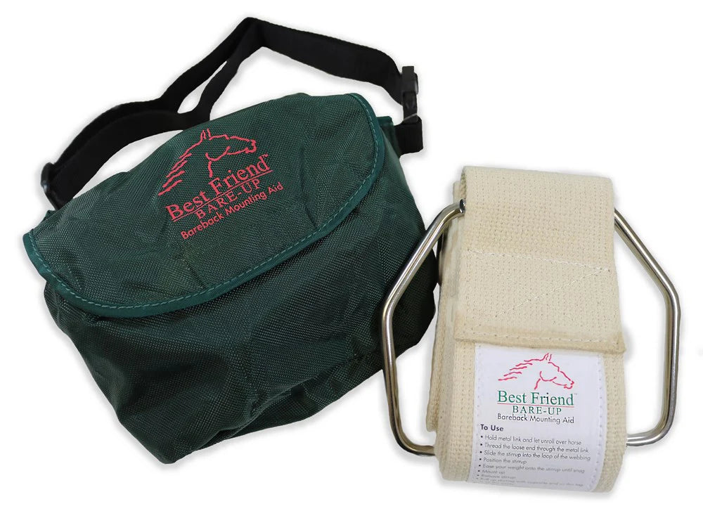 The Best Friend Bare-Up Mounting Aid gives riders the confidence to mount easily and safely. This patented product employs an asymmetric surface that supports the rider on one side, while keeping their leg in the correct position. The Bare-Up also quickly attaches to any saddle and can be used on multiple horses with little effort.