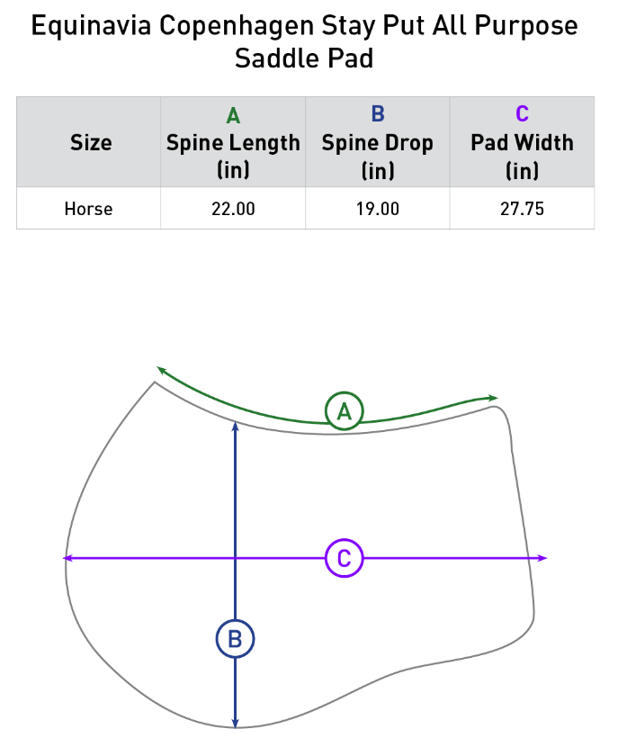 The Equinavia Copenhagen Stay Put Jump Saddle Pad features an elegant satin finish and poly cotton quilting. A front foam bumper enhances saddle stability while a large faux suede patch at the girth area improves leg grip and wear resistance. The pad includes a hook and loop closure girth loop and is trimmed with coordinating faux patent leather, twisted cord, and matching piping. The textured tricot backing ensures added comfort and durability.