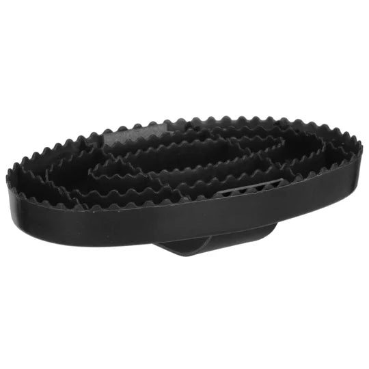 Designed for tough jobs, the Haas Striegel Der Gute Stiff Curry Comb is a handy addition to any grooming kit! Made of a stiff and durable plastic, this curry comb's "teeth" maximize the massaging effect while grooming. Leather hand strap makes it easy to hold, while the stiff design removes caked-on mud and dirt with ease. With its superior craftsmanship, this stiff curry comb will become an essential piece of your horse's grooming box.
