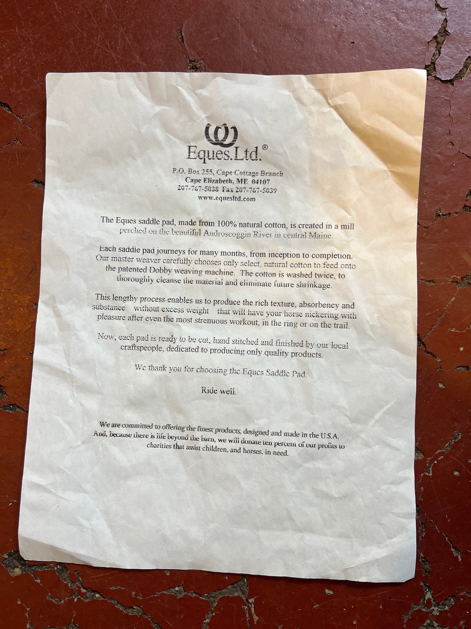 These Eques pads are made from 100% natural cotton, crafted in a mill beside the beautiful Androscoggin River in central Maine!