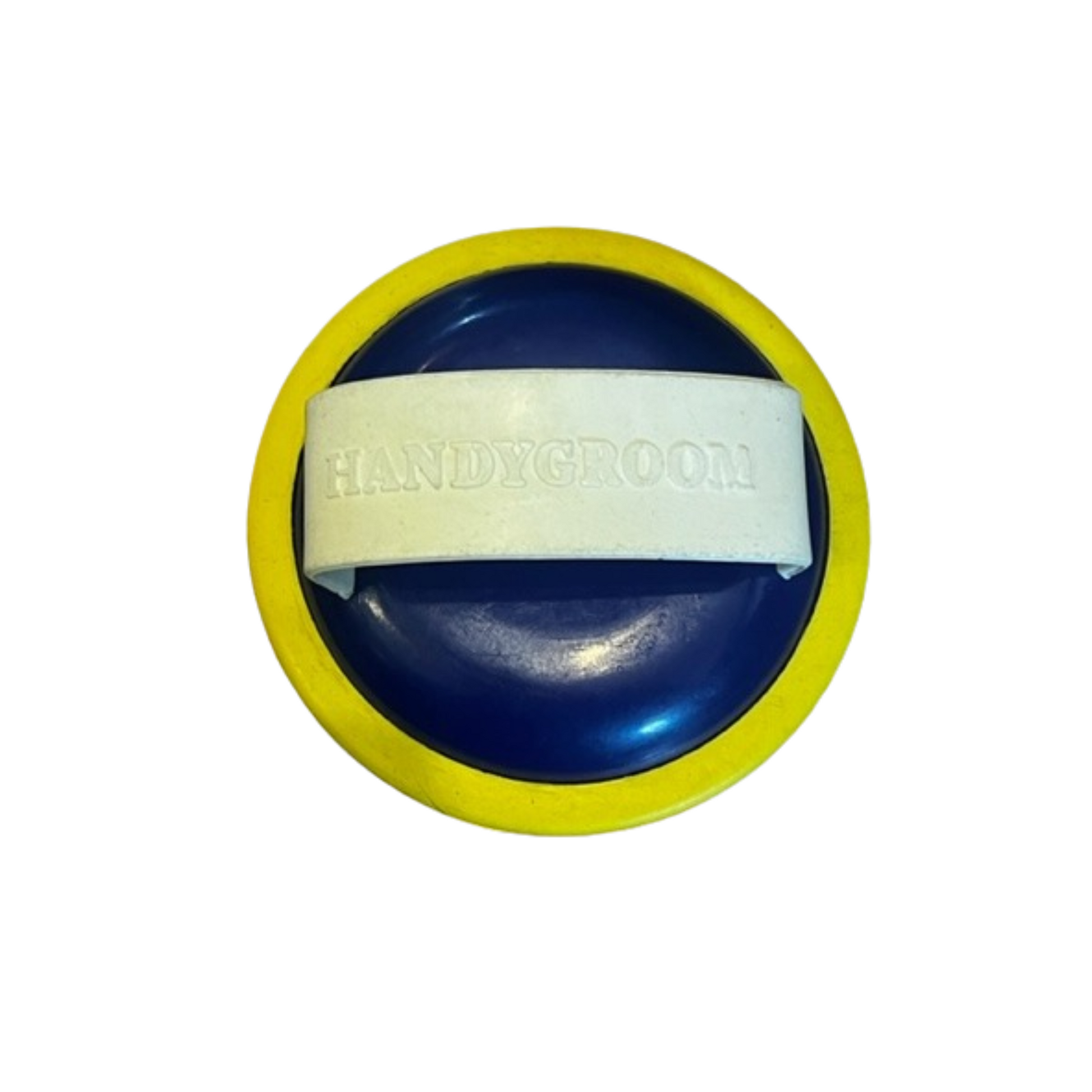 This rubber curry has a stiff and durable plastic upper and a soft, flexible rubber lower with small nubs. Makes it easy to groom and massage your horse.