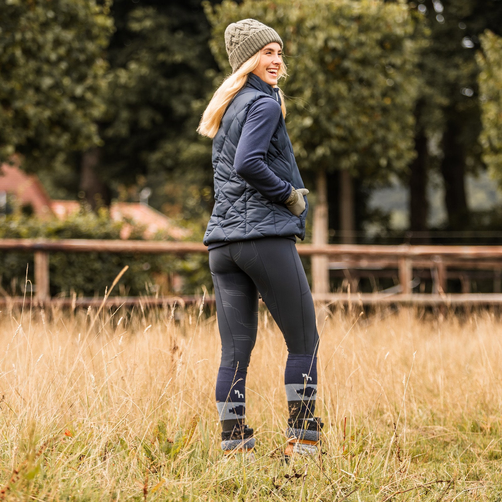 The Horze Indira breeches are elastic and high waisted. Thigh pockets are perfect for your phone. The silicone full seat keeps you safely in the saddle. Strategically placed seams make for a stunning look