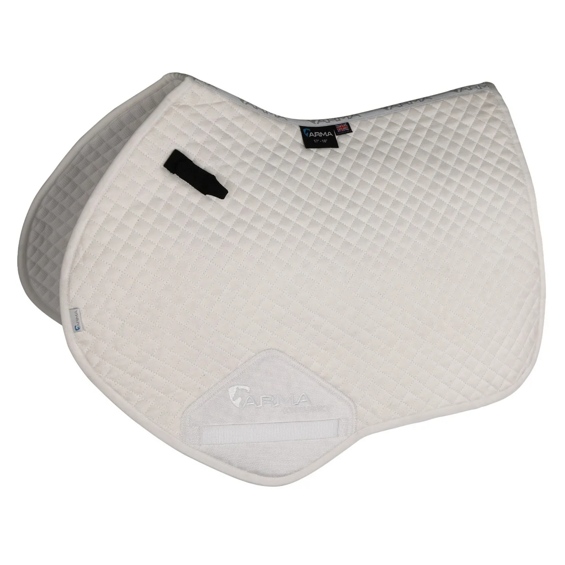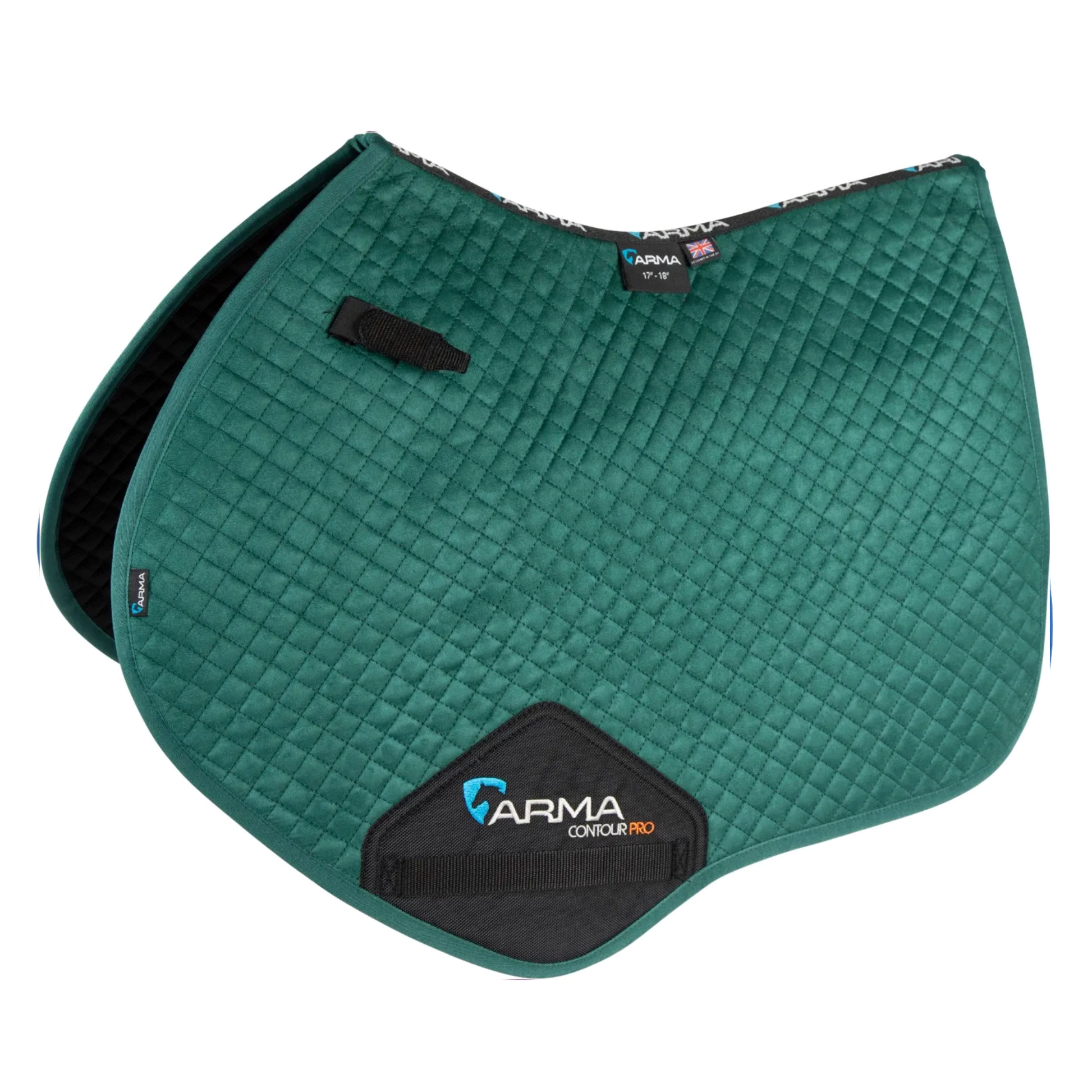 The Arma Suede Jump Pad is hardy and easy to care for making it a great pad for everyday use. Lined with WickAway Stay Dry lining it actively moves moisture away from the skin which helps prevent rubbing and discomfort for the horse. The contoured shape makes this pad a great fit under all types of jump saddles, including ones with more forward flaps. The suede top adds an extra element of elegance with its soft touch and fine look.