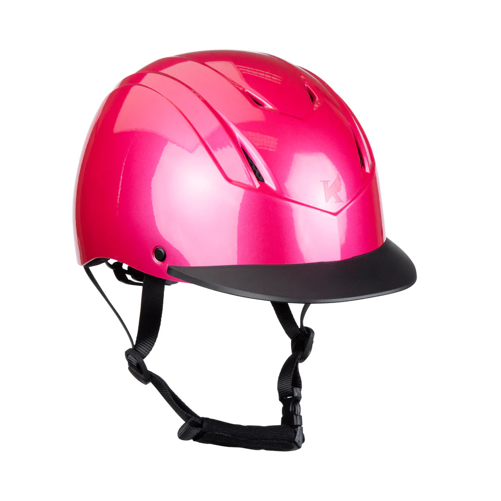 Balance safety with affordability with our low-profile schooling helmet. Designed for precision, it features a dial-adjusted fit system and a fully adjustable 4-point harness to ensure a secure and comfortable fit. The flexible brim enhances impact energy absorption in case of a fall, while thermoregulated airflow promotes all-day comfort. Removable, machine washable linings offer added convenience and hygiene.