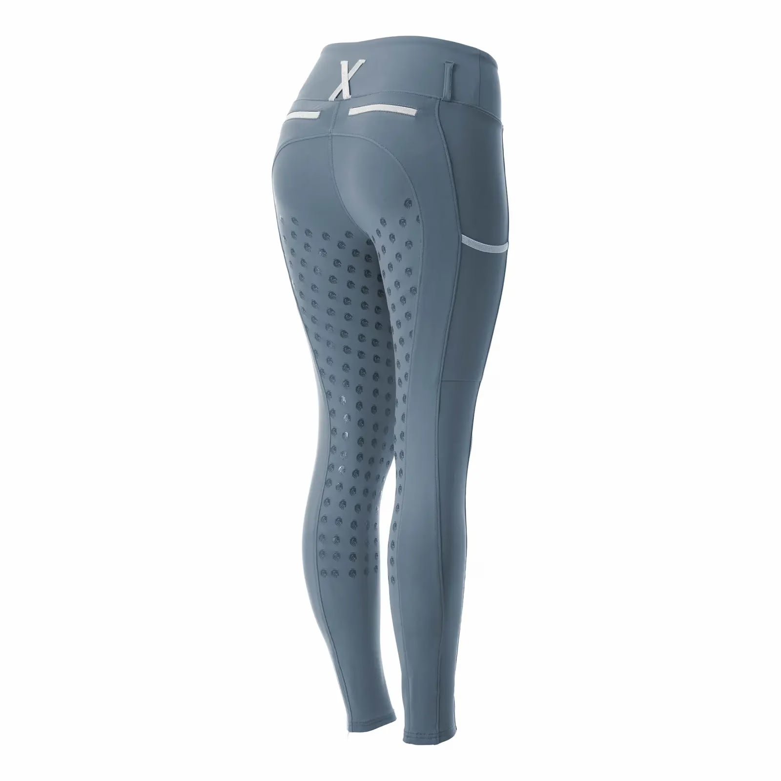 The Equinavia Mia Women’s Full Grip Tights offer a lightweight, mid-high rise design. Crafted from the same high-performance fabric as the popular Maja tights, they provide exceptional stretch and breathability while being supportive and firming. The high waistband features offset belt loops for a secure and flattering fit, while two deep side pockets and faux back pockets are accented with shimmery tape for a touch of elegance. A 3/4 silicone seat ensures optimal grip across disciplines, and gripper bottoms keep the tights securely in place for all-day comfort in the saddle.