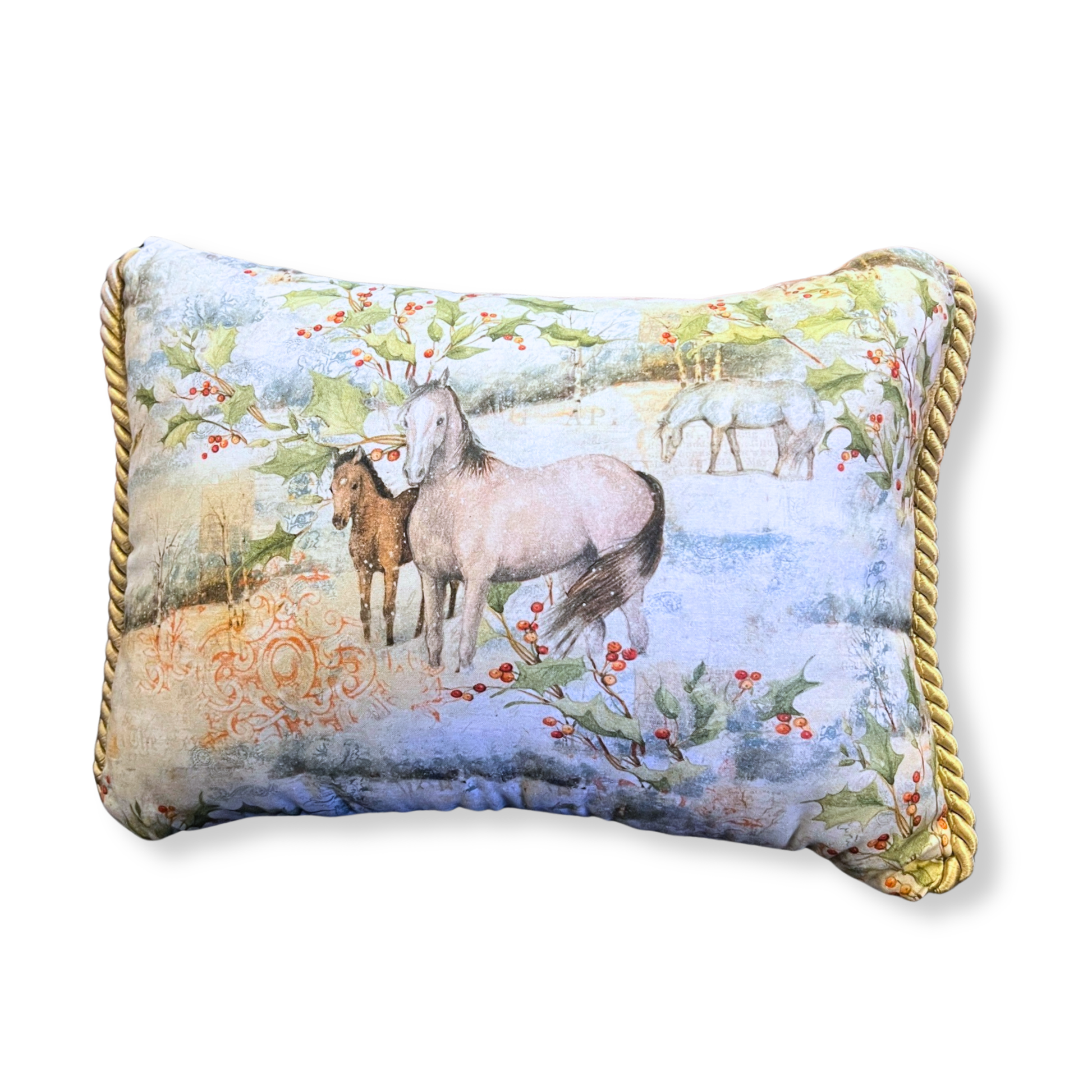 This festive mare and foal scene will add holiday cheer to any home! Finished with a corded trim.