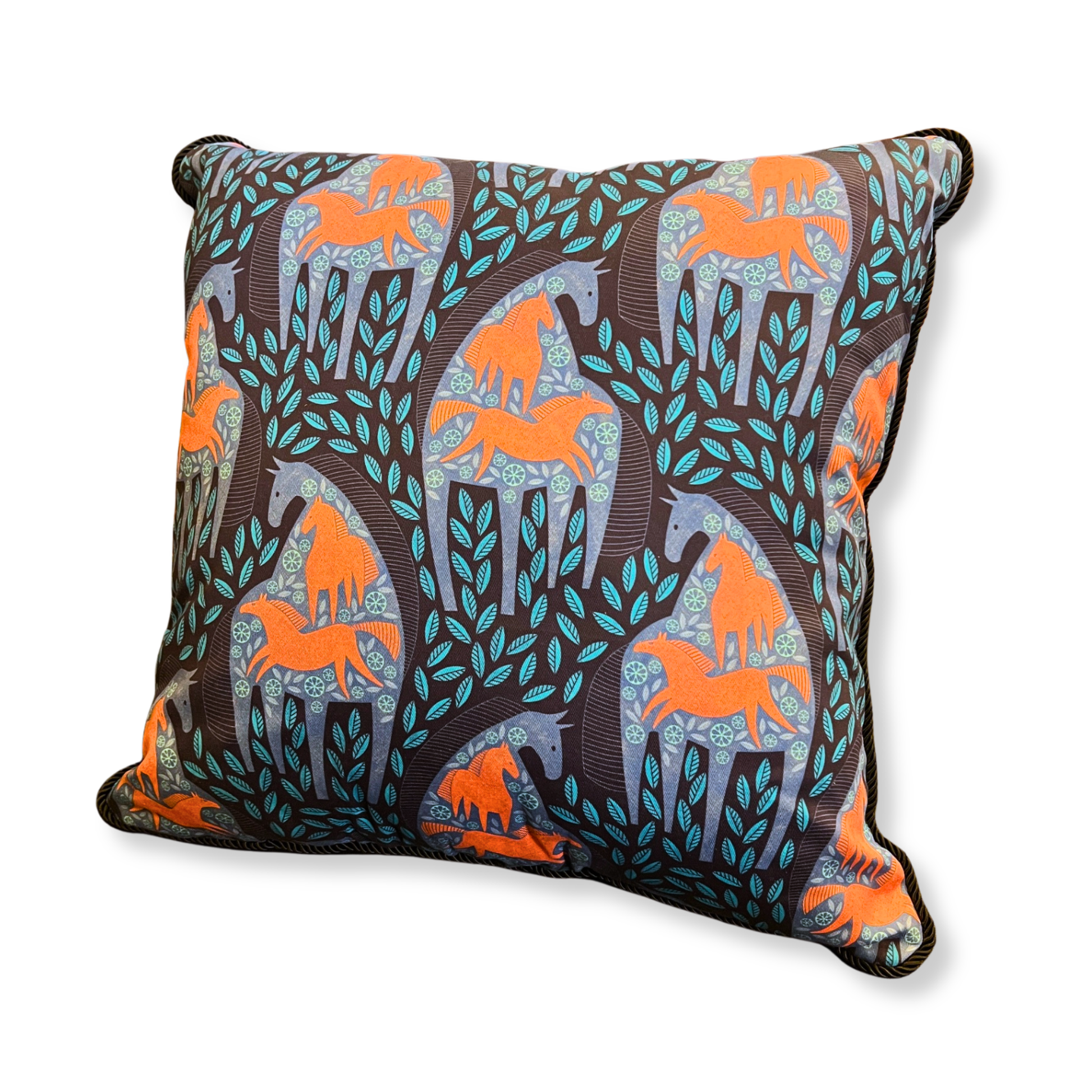Bring a pop of equestrian charm with these beautiful pillows. The color palette is deliciously serene while being cheerful and fun. Finished with a corded trim.