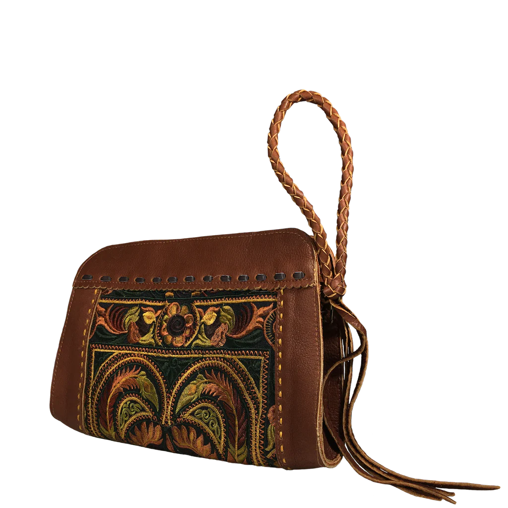 Hadley, from the Phoenix Collection, is a stunning wristlet that is a must-have! Leather and our hand-sewn embroidery are crafted together with decorative stitching and lined with beautiful soft leather. Easily convert the hand bag into a shoulder bag with a removeable shoulder strap!