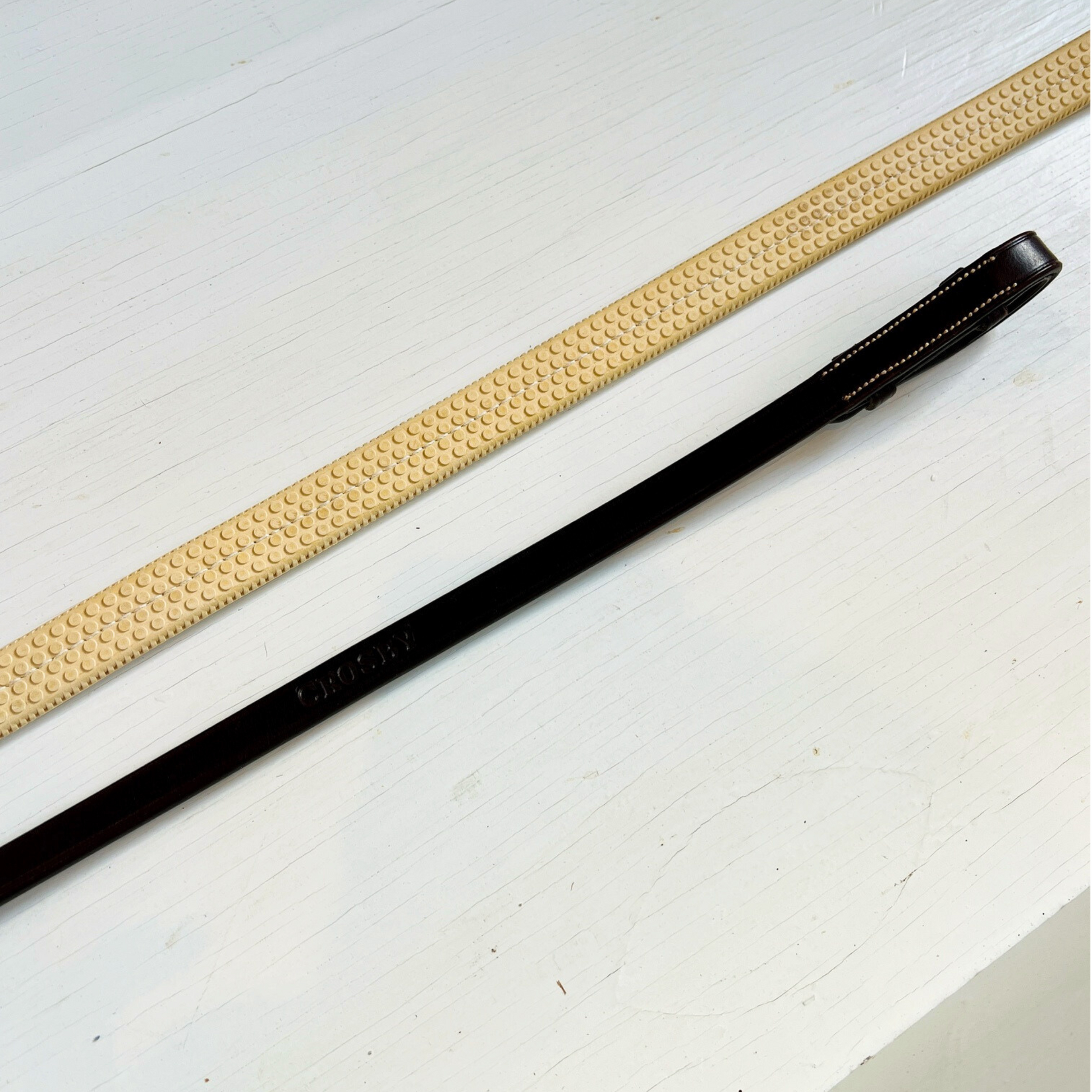 Crosby Rubber Reins- Sherry/White || DISCONTINUED