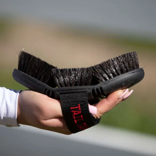The Tail Tamer Soft Touch Flex Horse Hair Brush is perfect for achy hands and reaching hard-to-brush places, like your horse's legs. Soft touch rubber backing offers a super comfortable grip, while two flex points allow the brush to curve naturally with your hand. Dense, natural horse hair bristles gently flick away dust and add shine to your horse's coat.