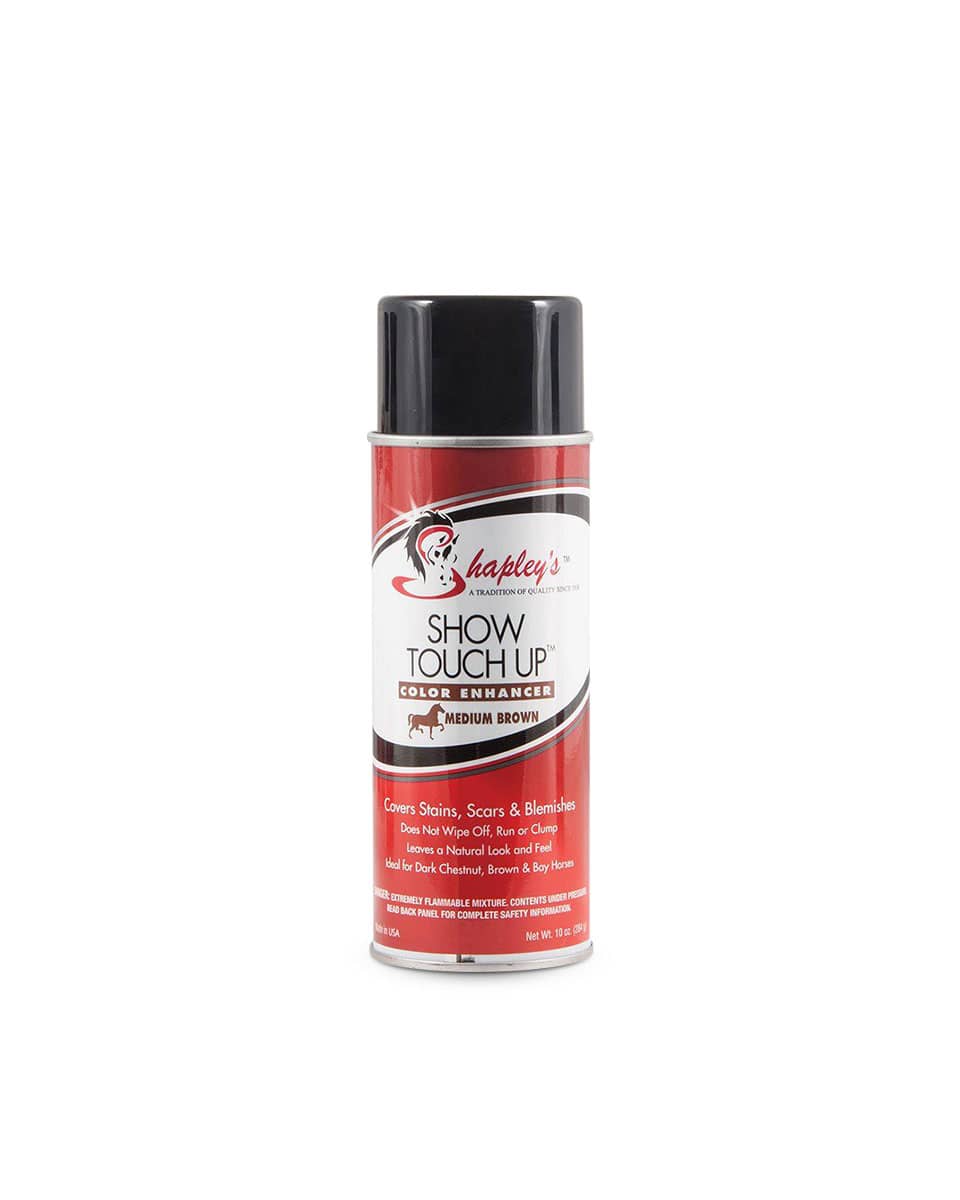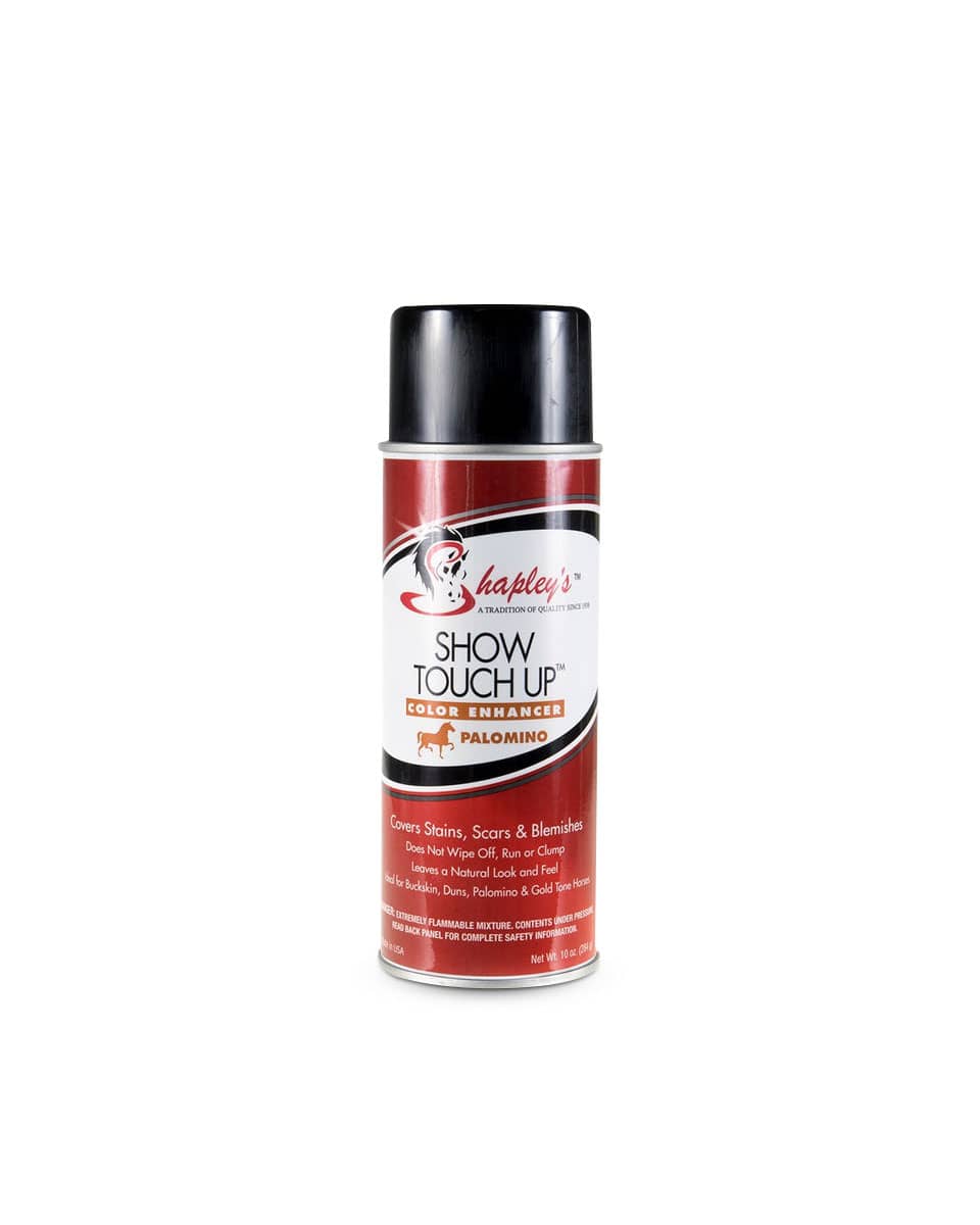 Part of the popular Shapley's Collection, their Show Touch Up spray is a color enhancing spray developed specifically for horses. Perfect for making markings pop and white horses sparkle, this spray creates a natural look and feel without the messy qualities of other coat polishes. Can also be applied to tails to promote a fuller appearance and hide thinner areas.