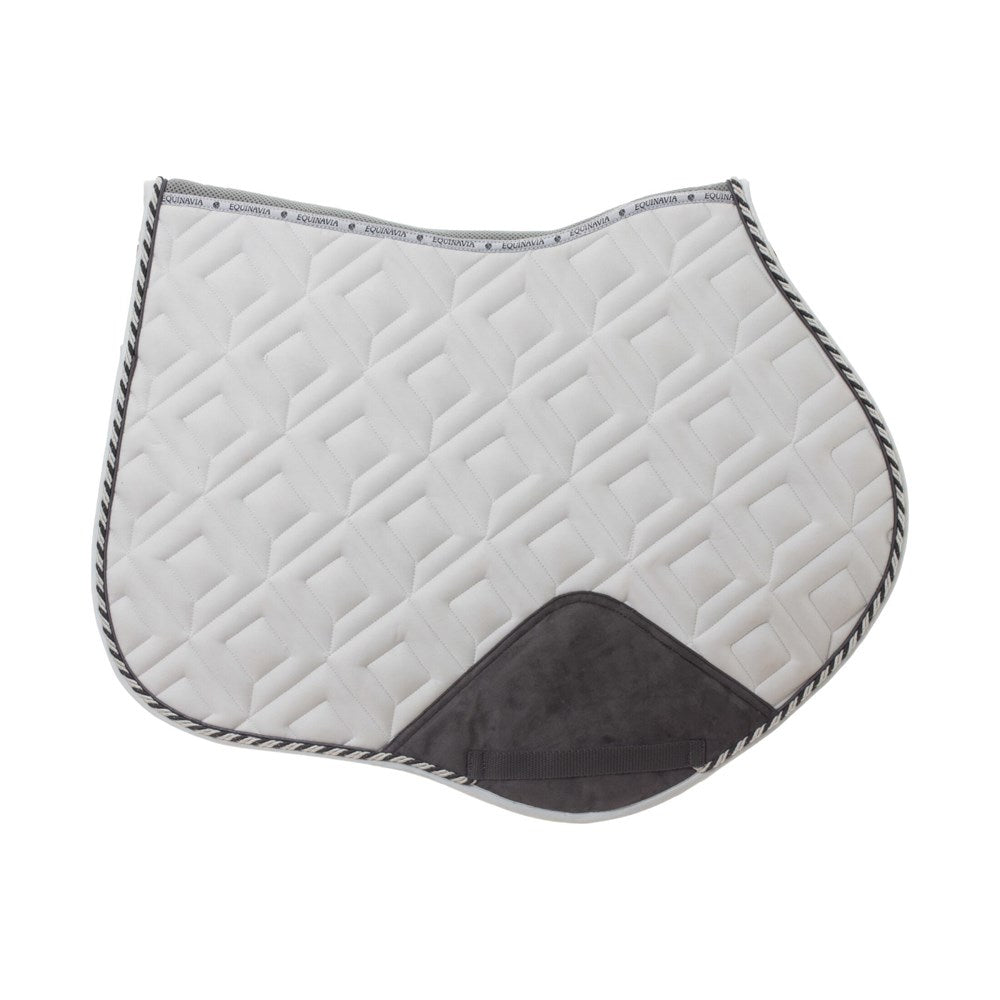 The Equinavia Stockholm Jump Pad is designed with a contoured shape and a fully mesh spine to enhance air circulation, ensuring your horse stays comfortable during rides. Made from durable poly fabric, it is easy to care for. With a 10mm foam fill and tricot waffle weave backing, it provides soft cushioning and moisture-wicking properties. The pad features a double diamond quilt pattern and an ultrasuede patch at the girth loop for added grip. Stylishly finished with single piping and twisted cord embellishments.
