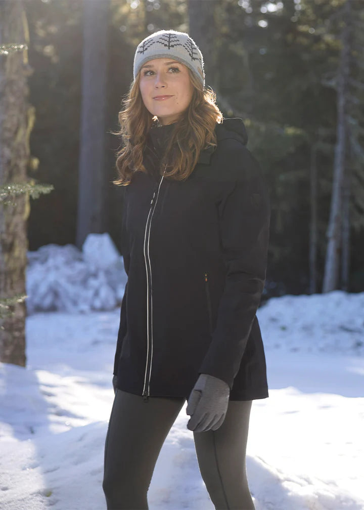 From saddle to summit, celebrate every adventure in this tech-forward, three-quarter length waterproof shell built for unpredictable weather. Crafted from smooth HydroTek™ fabric, it’s fully seam-sealed, windproof, and waterproof to shield you from the elements. The mid-weight shell with a lightweight liner makes it ideal for three-season layering. Designed with a tall collar, removable hood, and reflective accents for low-light visibility, it adapts to changing conditions. Thoughtfully placed vents, roomy pockets, and an adjustable back hem with a zippered pleat ensure breathable comfort and mobility.